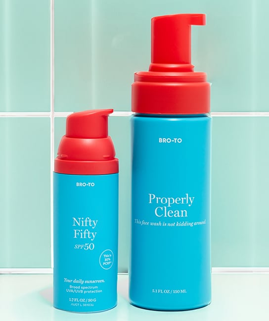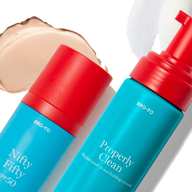 You’ll score Properly Clean, our gentle, non-stripping face wash that removes dirt, oil, sweat, sunscreen, and grime. And, an AM must-have, SPF. Nifty Fifty, is our hydrating daily SPF 50 that protects the skin from damaging UVA and UVB rays. (Forget cryptocurrency, daily SPF is the best investment you can make for your future.)